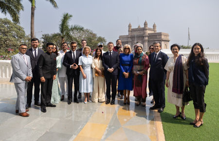 After this, he and First Lady Brigitte Macron also paid floral tributes to those who lost their lives in the 2008 terror attack at the Taj Mahal Palace Hotel.