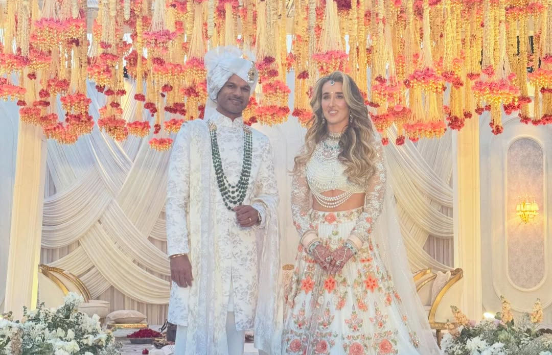 Indian cricketer Shikhar Dhawan tied the knot with his long-time girlfriend Sophie Shine in Delhi-NCR on Saturday.