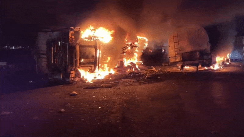 Within minutes of the crash, a massive fire erupted, and flames were visible from a distance as the vehicles were completely gutted. The incident led to a long traffic jam stretching several kilometres on the highway.