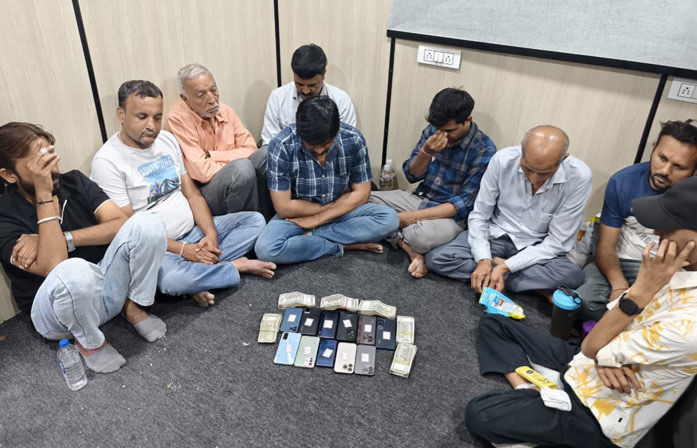 The arrested accused have been identified as Jaimeen Labhubhai Barot (40) of Thaltej, Vishal Laxmanbhai Thakor (27) of Satellite, Jignesh Navinbhai Patel (45) of Satej, Bhavin Dineshbhai Patel (49) of Bhadaj, Harsh Prafulbhai Patel (36) of Satadhar, Janak Babubhai Patel (36) of Bhadaj, Haresh Bharatbhai Patel (40) of Sola, Champaklal Mansukhbhai Patel (73) of Chandlodia and Jitendrabhai Madhavlal Patel (62) of Kadi.