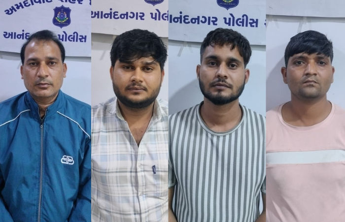 The accused were identified as Abhishek Kumar Pawan Kumar (24), Arjun Kumar Pawan Kumar (21), Sandeep Bukhram Sen (30), and Sunil Kumar Amilal Yadav (35), all residents of Vejalpur and natives of Haryana.