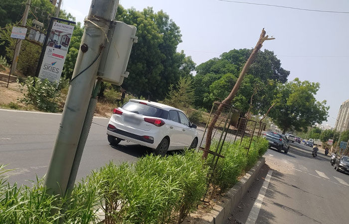 The garden department had earlier planted trees on road dividers, but the ad agency violated tender conditions and cut down the trees grown between the dividers to make the kiosk ads visible.