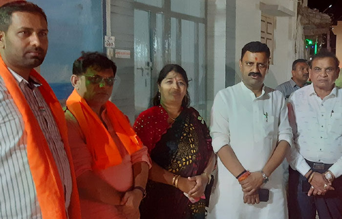 The district party president and Dhari taluka panchayat member Joshi and his husband, along with their son, were attacked by their neighbour in a scuffle, which proved fatal for Madhuben.