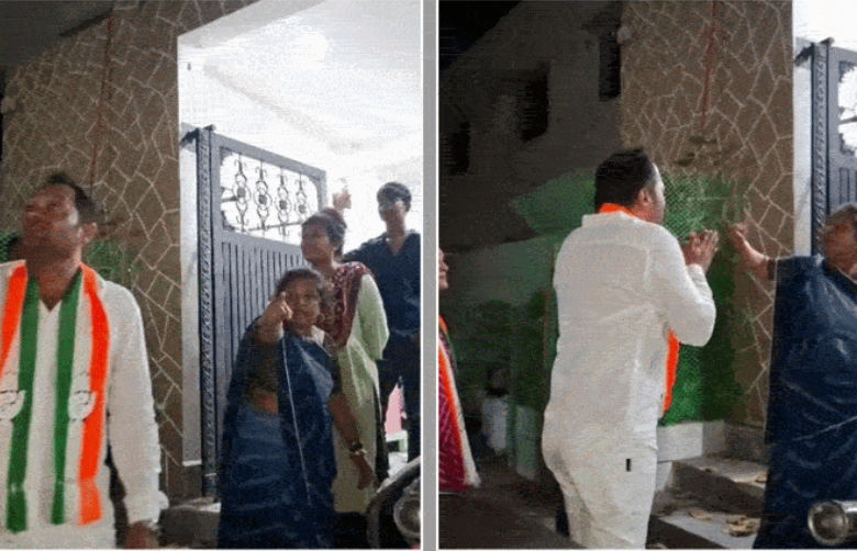 According to reports, congress candidates were visiting houses in the area along with their supporters to seek for votes. During this, they reached the house of a BJP woman candidate. It remains unclear whether they went there by mistake or knowingly, but they continued their campaign and asked for support.