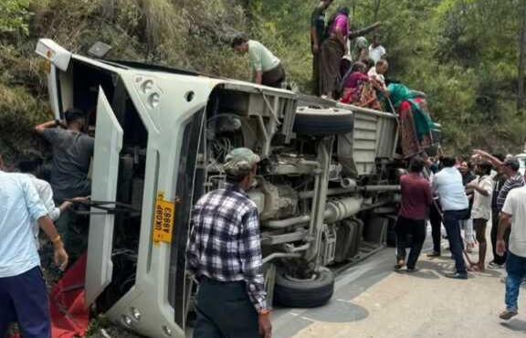 In yet another road mishap in Uttarakhand’s hilly terrain, a bus carrying around 35 pilgrims from Gujarat to Kedarnath Dham overturned on the Tehri-Ghansali motor road on Wednesday, injuring at least 18 passengers.