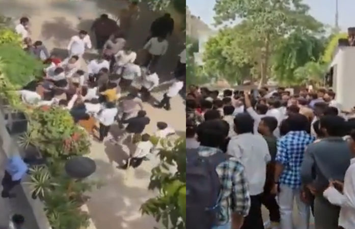 The incident occurred when ABVP members had arrived at the university to make an announcement. However, college authorities allegedly asked them to conduct the programme outside the campus premises, leading to a heated argument between the two sides.