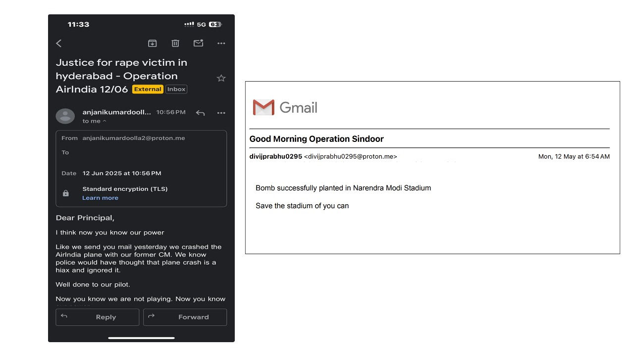 Another email made false and disturbing claims involving rape, dowry harassment, and threats of mass violence. All the messages followed a similar pattern, criticising law enforcement while attempting to appear as social justice-driven.