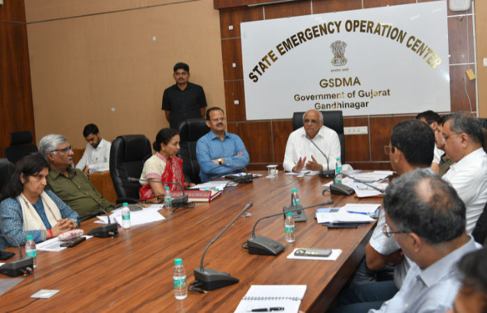 Chief Minister Bhupendra Patel led a meeting from the State Emergency Operation Center today to review the state’s preparedness amid widespread heavy rainfall. The meeting focused on assessing rescue and relief measures implemented across the state, where heavy rain is expected over the next three days.