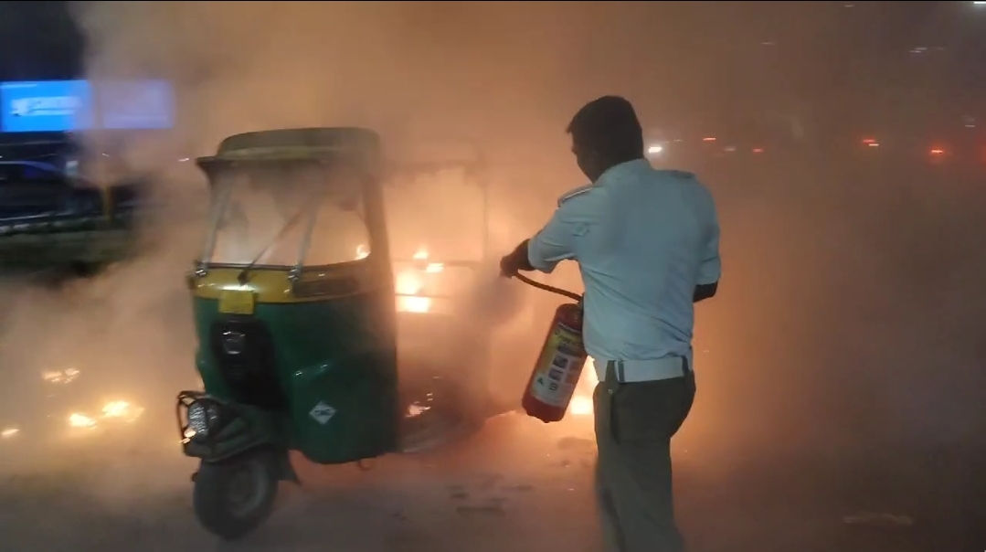 The incident occurred around 7.20 pm, when flames erupted in the rickshaw, causing panic among commuters and local residents. Traffic police and TRB officers, stationed nearby, promptly sprang into action. They swiftly diverted traffic from the area to ensure the safety of motorists and pedestrians while attempting to douse the flames.