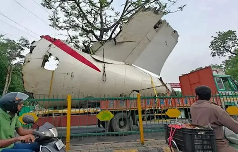 As the wreckage of the Air India plane crash was moved from the scene in Ahmedabad on Sunday, the tail of the crashed aircraft hit a tree, halting the truck that was moving it. The incident took place near the ACB office in Shahibaug.