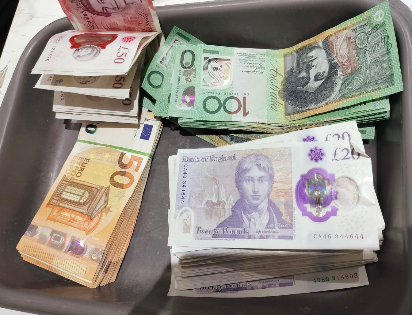 During a thorough examination of the passenger’s baggage, Customs officials recovered a total of 325 foreign currency notes concealed inside. The seized currency comprised 217 British Pound notes valued at ₹5.77 lakh, Euro notes valued at ₹3.47 lakh, and 41 Australian Dollar notes valued at ₹2,40 lakh. The cumulative value of the undeclared foreign currency was assessed at ₹11.64 lakh.