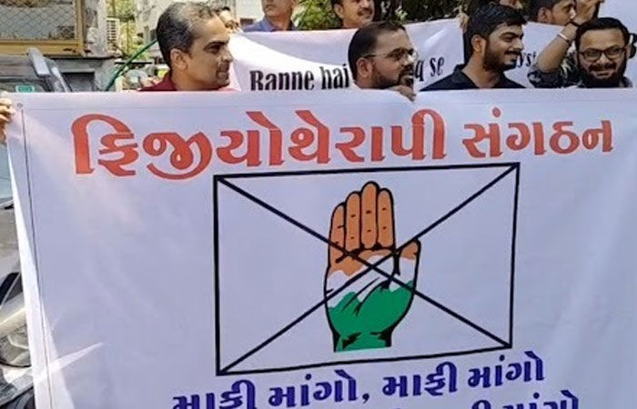 But local physiotherapist groups are having none of it. Bearing banners and placards at a protest near Chakli Circle in the city’s Alkapuri area today, they demanded that the Congress chief apologize and withdraw his complaint against the young BJP contender.
