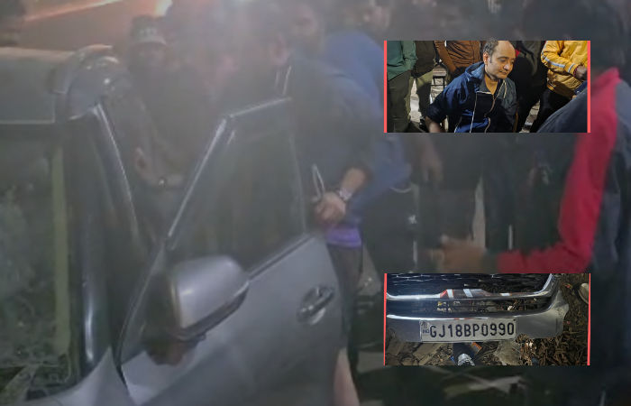 According to the traffic police, the incident occurred around 8.45 pm on January 18 when complainant Sobhendra Umesh Dubey (29) and his friend Hemand Barot were riding a Pulsar motorcycle towards Vaishnodevi Circle. As they were ascending the Shilaj Bridge from the Montecristo side, a Kia car allegedly hit the motorcycle from behind at high speed, throwing both riders onto the road and causing multiple injuries.