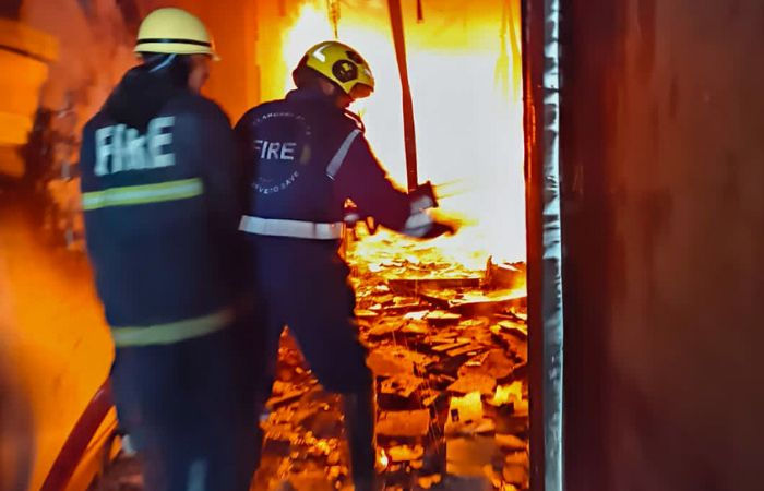 The blaze reportedly originated from a battery-operated three-wheeler belonging to Havmore Distribution, which caught fire during charging due to an electrical overload. The flames quickly spread, engulfing two other nearby tricycles parked at the site. During the incident, around ₹2 lakh worth of valuables were damaged.