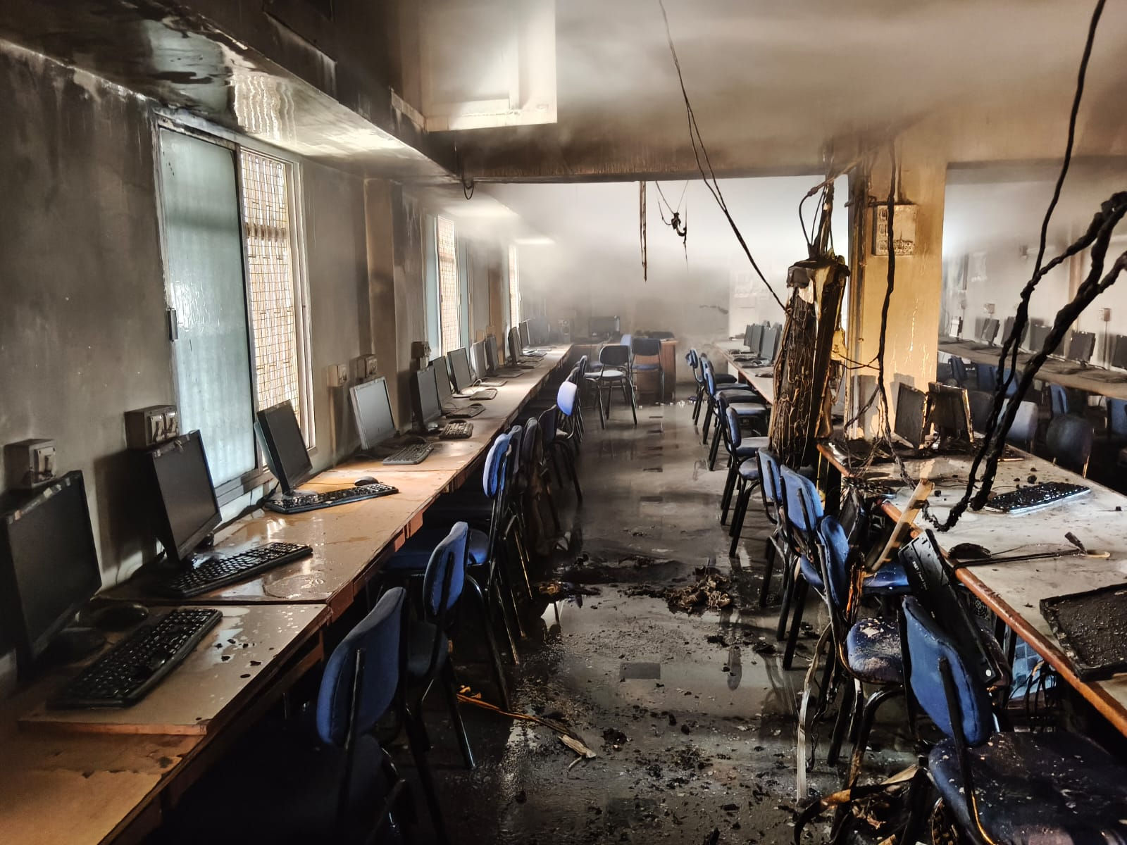 According to preliminary findings, the fire originated from one of the computers in the lab and subsequently spread to adjacent desks and electronic equipment. Fire officials suspect an electrical short circuit could be the cause, though a detailed investigation is underway.