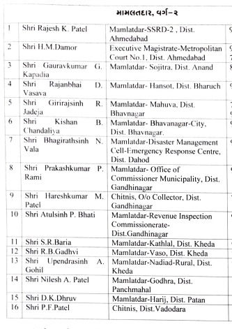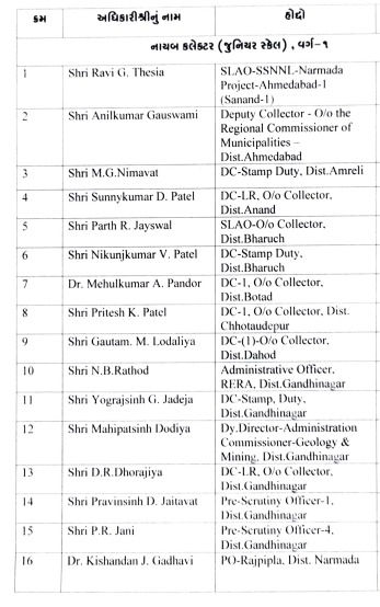 The services of 16 officers of Gujarat Administrative Service (Junior Scale) Class-1 and 16 officers of Mamlatdar, Class-2 are being allocated to the Relief Division, Revenue Department with immediate effect until further orders.