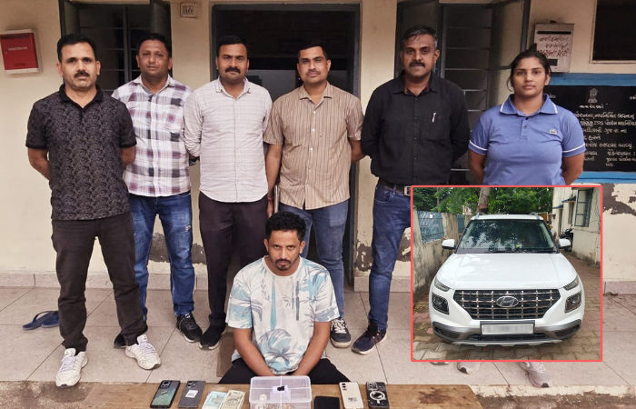 Under the supervision of Police Inspectors V D Vala, the SOG team began examining CCTV footage from the temple premises, nearby roads, and the statewide CCTV “Netram” network. During this analysis, the team identified a white Hyundai Venue suspected to have been used in the thefts.