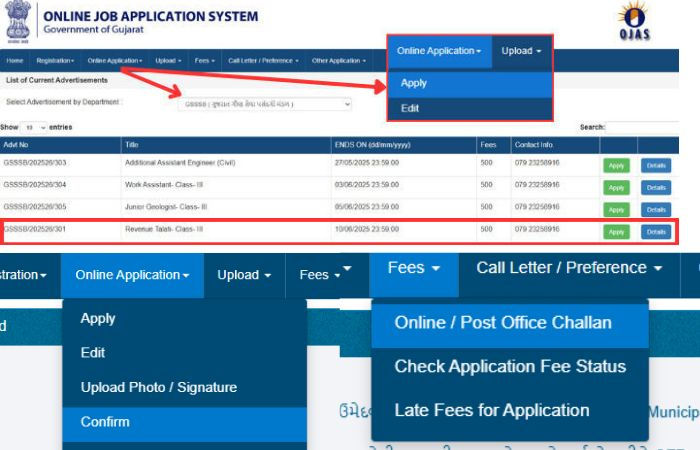 - Clicking on the ‘Apply’ tab, they can select ‘Revenue Talati Class III’ advertisement.
