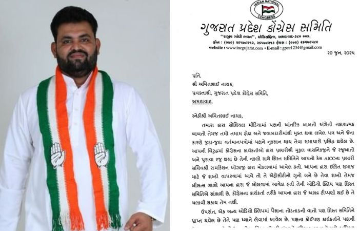 Gujarat Congress spokesperson Amit Nayak has been suspended for anti-party activities and using abusive language attracting charges under the Atrocities Act.