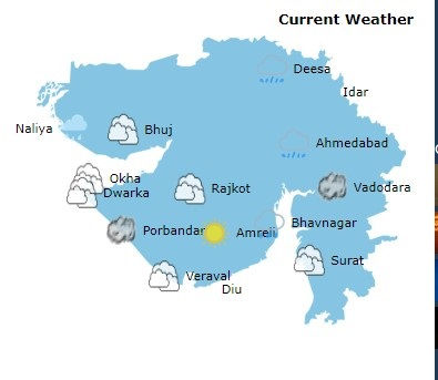The Indian Meteorological Department (IMD) has predicted normal rain in the state for the next five days. Light to moderate rainfall is likely to occur in areas including Saurashtra-Kutch, south Gujarat, and Ahmedabad-Gandhinagar.