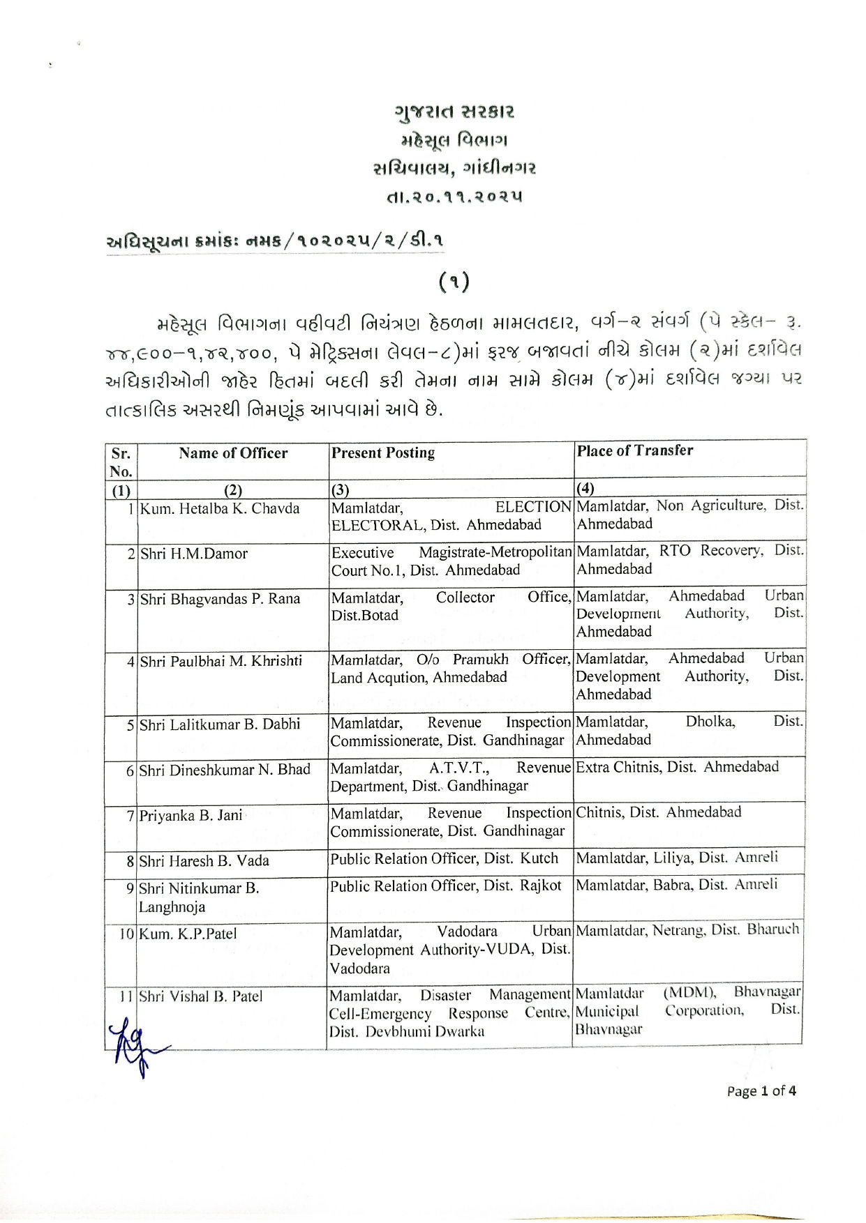 Gujarat revenue dept transfers 39 Mamlatdars in major administrative reshuffle