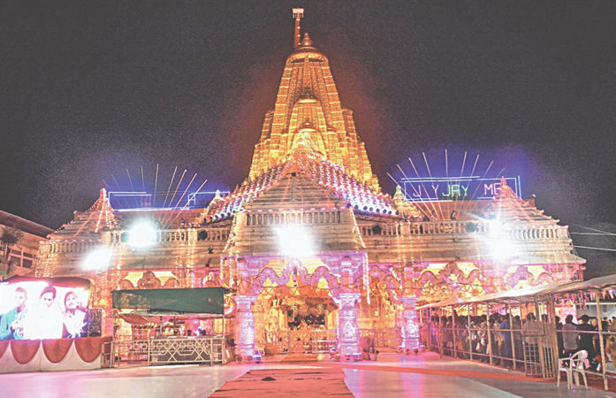 Theme-based lighting inspired by the divine form of Mataji has been installed across the holy town, creating a unified and majestic atmosphere throughout. The main temple has been beautifully decorated with flowers, while at night the glowing lights at Chachar Chowk will mesmerise devotees.