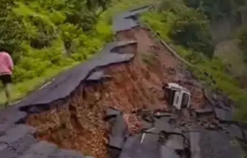 Heavy rain washes away road in Gujarat’s Santarampur, car falls into gorge