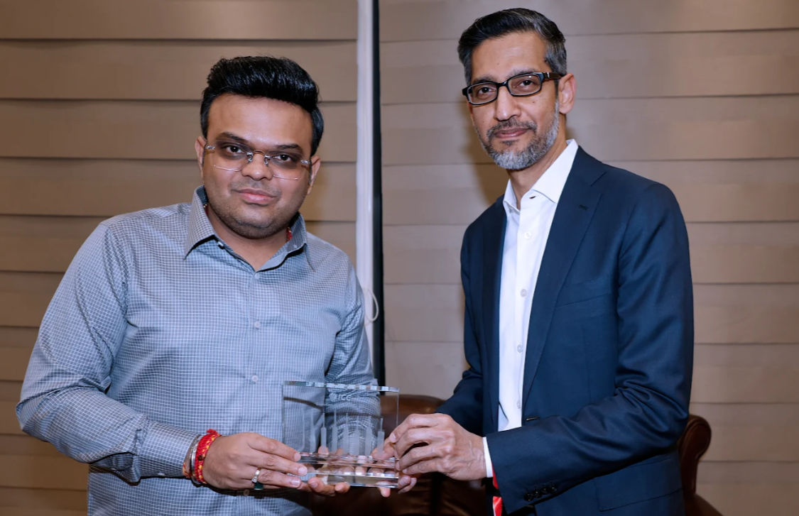 Sundar Pichai, CEO of Google, and Jay Shah, Chair of the International Cricket Council, were present at the ICC Men’s T20 World Cup Super 8 clash between India and South Africa at the Narendra Modi Stadium on Sunday.