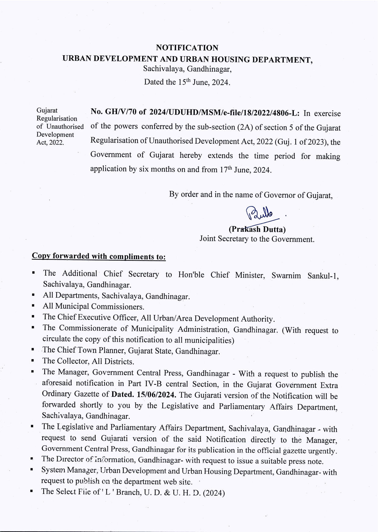 A notification from the Urban Housing and Urban Development Department today extended the deadline for the impact fee further by another six months.