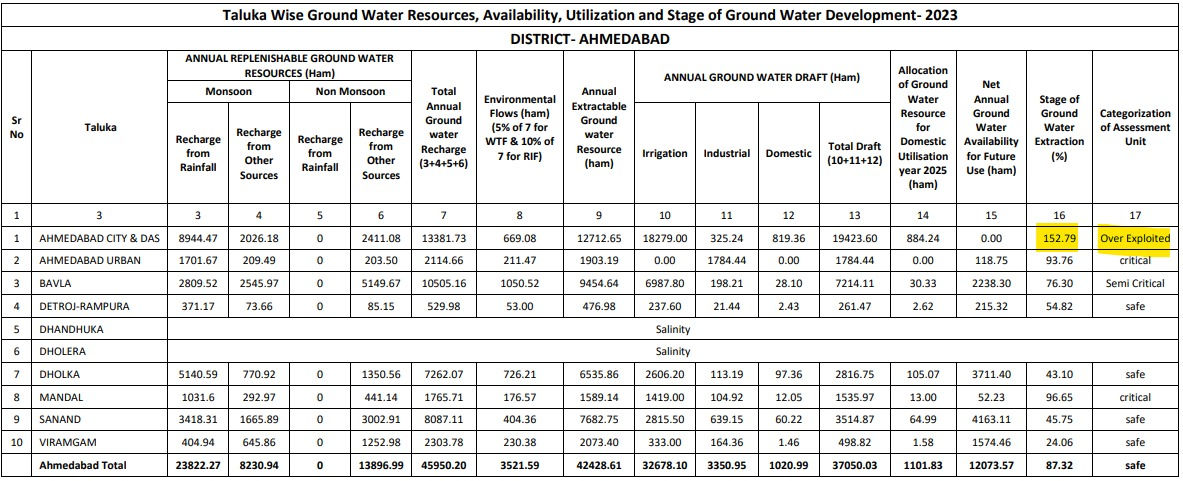 Ahmedabad’s groundwater extraction issue