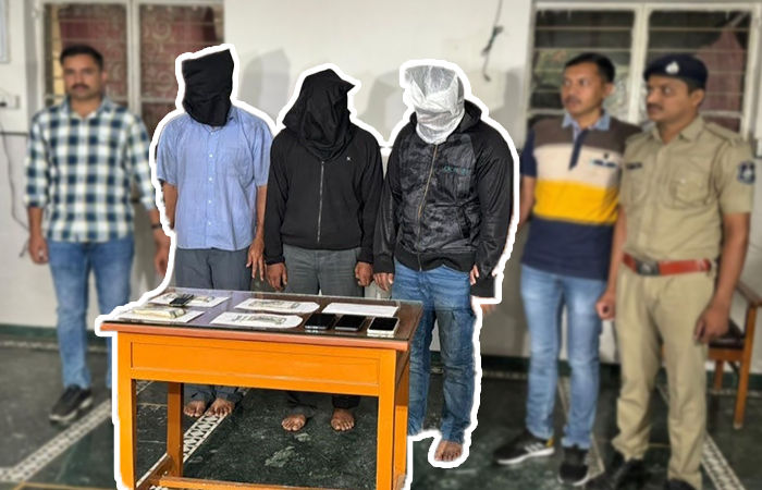 The gang was caught with ₹1.46 lakh of materials, including ₹1.04 lakh in cash, and four mobile phones.