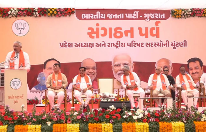 Leading figures present at the swearing-in included MP and Central Election in-charge K Laxman, Gujarat Pradesh in-charge Bhupendra Yadav, outgoing state president C R Patil, Chief Minister Bhupendra Patel, and organisation general secretary Ratnakar. The official announcement of the new state president’s name was made by the state election committee.
