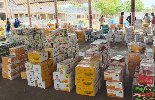 The Kesar mango season has begun in Talala Marketing Yard. On the very first day, 10,400 boxes of ten kilograms each were received.. The costliest box was sold at ₹1,250, while the price for the boxes with slightly inferior quality of mango were sold at around ₹450.