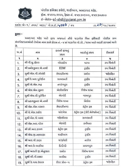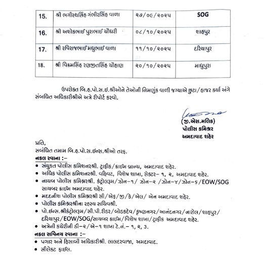 Major reshuffle in Ahmedabad police: 83 PSIs transferred internally, 18 newly appointed