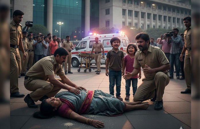 Shital Malaviya arrived with her husband and two children to submit a representation regarding irregular foodgrain supply despite holding a ration card. According to family members, local officials had not addressed their long-pending complaints.