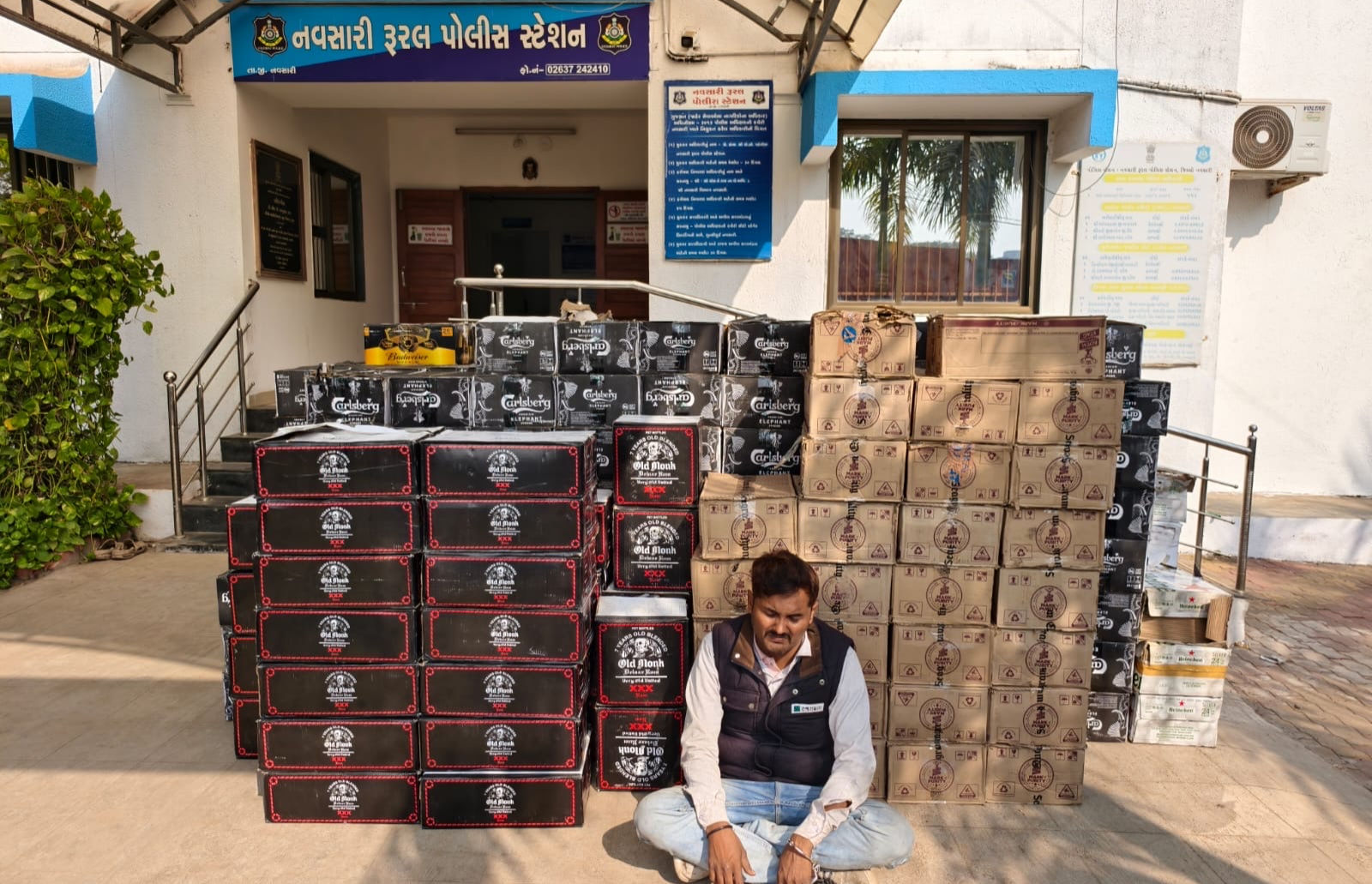 The raid was conducted on January 17 on the Mumbai–Surat National Highway near the Sangam Solar Plant at the Una village bridge area, within the limits of the Navsari Rural Police Station. Acting on specific inputs, the SMC Prohibition team intercepted a vehicle allegedly being used to transport illegal liquor.
