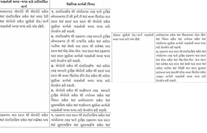 The road from Ahmedabad Airport via Airport Circle, Indira Bridge Circle, Mother Dairy, to Apollo Circle will be closed for vehicular movement.
