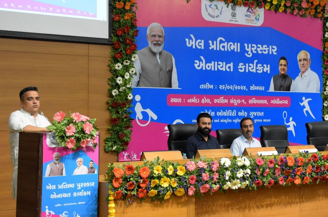 Principal secretary Ashwini Kumar, director general of sports authority of Gujarat RS Ninama, secretary of sports authority of Gujarat IR Wala, vice chancellor of Swarnim Gujarat Sports University Arjun Singh Rana, and Khel Pratibha awardees and their parents were present on this occasion.