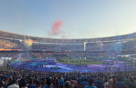 Thousands of fans inside the world’s largest cricket stadium sang along and waved the tricolour as Pathak’s performance kicked off the pre-final celebrations.