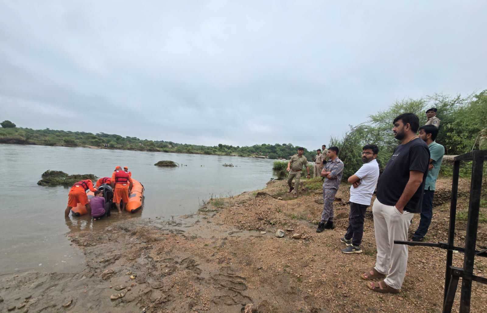 Near Subhash Bridge, equipment related to the Mumbai-Ahmedabad bullet train project was reportedly swept away in the strong river current.