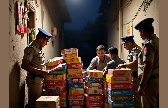 The raid resulted in the seizure of multiple boxes of fancy sky fireworks, which had a total market value of ₹3.14 lakh. Following the seizure, an FIR was lodged under Section of the Explosives Act, 1884, for possession and sale of fireworks without authorisation, and further investigation is on.