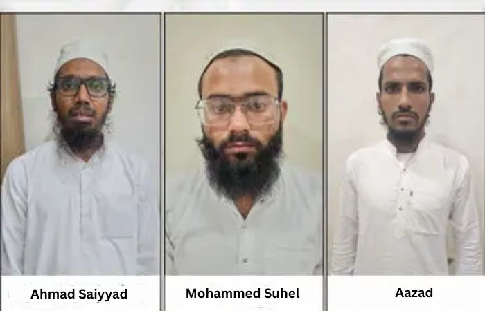 The Gujarat Anti-Terrorist Squad (ATS) has arrested three suspected terrorists including Ahmad Saiyyad, Mohammed Suhel, and Aazad, from Adalaj, near Gandhinagar. According to sources, the suspects are believed to be part of a new terror module with alleged links to ISIS. Of the three, two are said to be from Uttar Pradesh, while one hails from Hyderabad.
