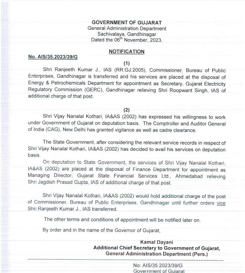 The state government departments are witnessing waves of transfer orders and promotions ahead of Diwali. After a reshuffle in the revenue department, the general administrative department saw promotions and transfers.
