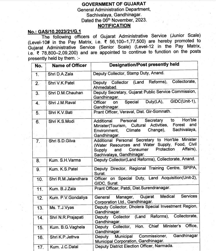 As per the notification, these officers of GAS (junior scale with level 10 pay matrix, ₹56,100-₹1,77,500) were promoted to GAS (senior scale with level 12 pay matrix,₹78,000-₹2,09,200).