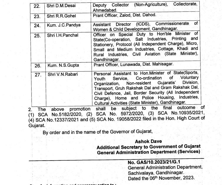 Transfers and promotion continues in Gujarat administrative dept, 27 promoted