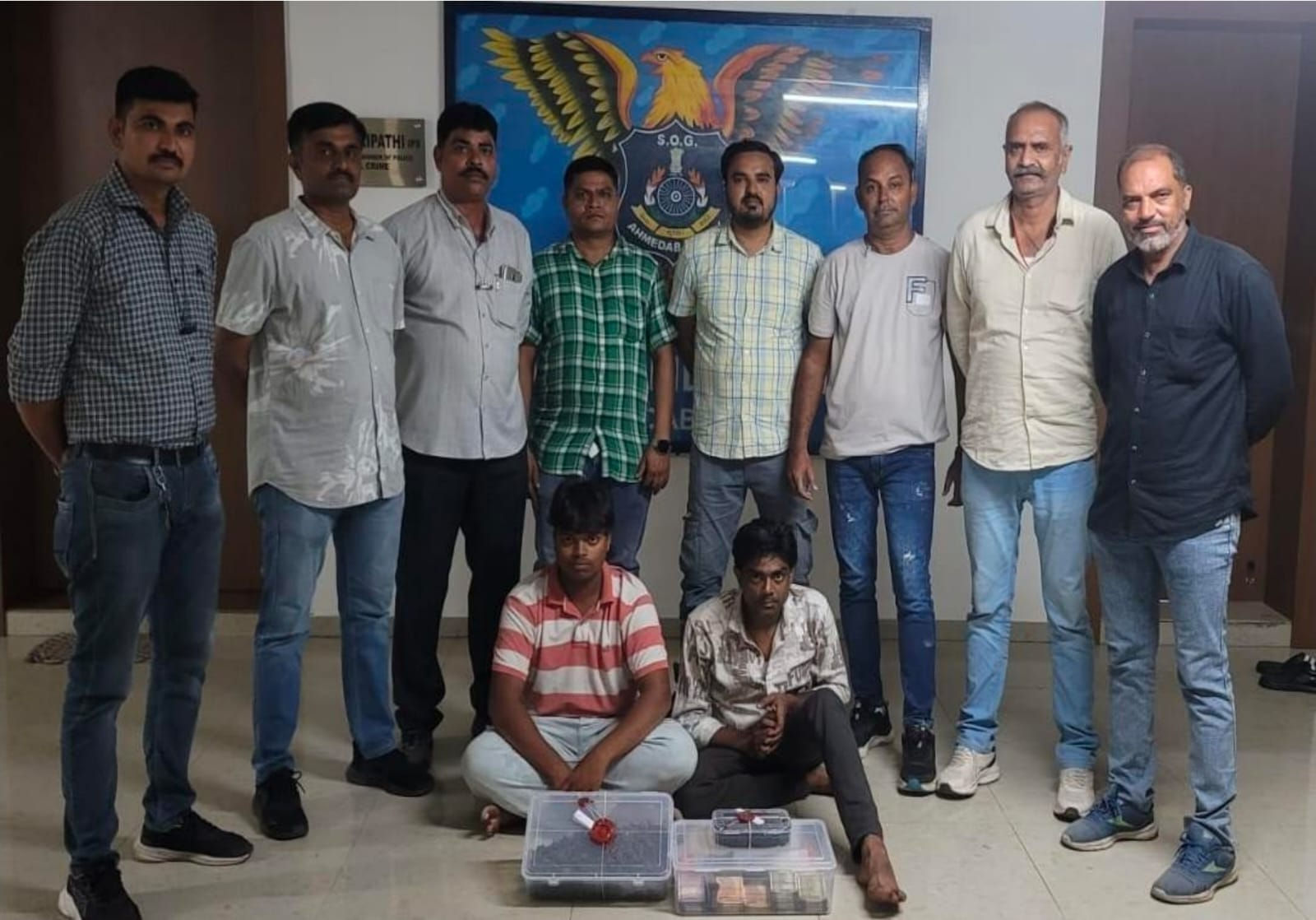 The Special Operations Group (SOG) of the Crime Branch in Ahmedabad on Monday arrested two men from Saraspur for allegedly selling narcotic substances under the guise of a chemical product used for tyre repairs. The duo were caught with 410 grams of marijuana and several boxes of a chemical solution suspected to be used for intoxication during a raid at their residence in the Girdhar Master Compound area.