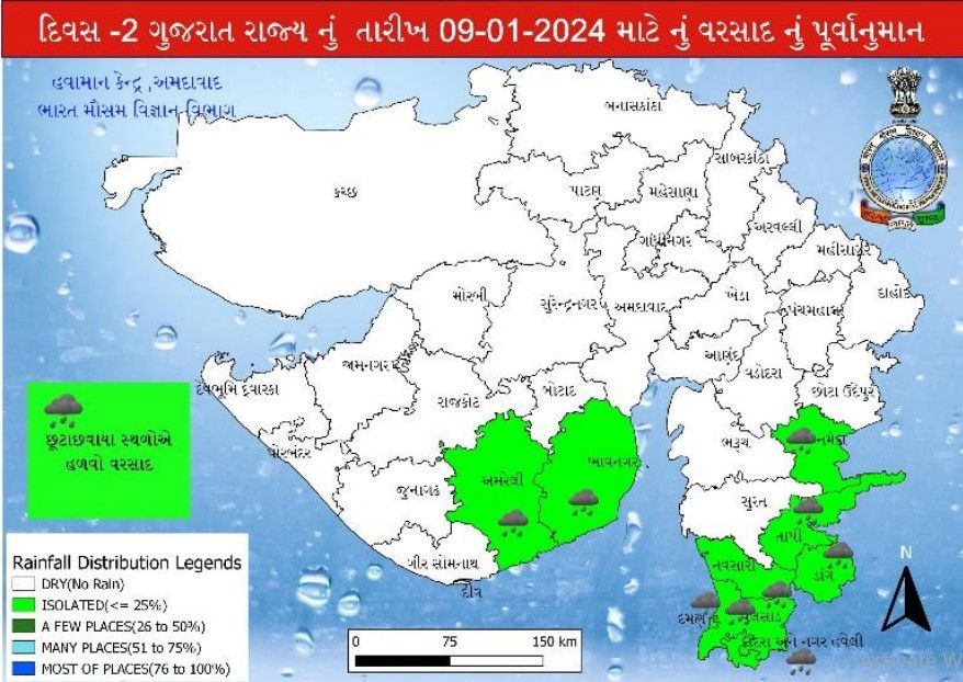 Moreover, on Jan 10, light rain is very likely at isolated places in the districts of north Gujarat region, in Banaskantha and Sabarkantha.