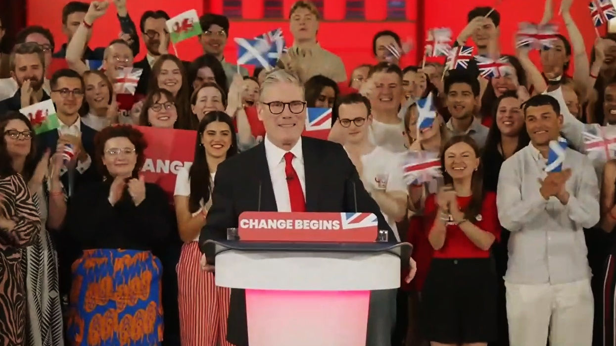 His address comes after UK Prime Minister and Conservative Party leader Rishi Sunak conceded defeat in the polls.
