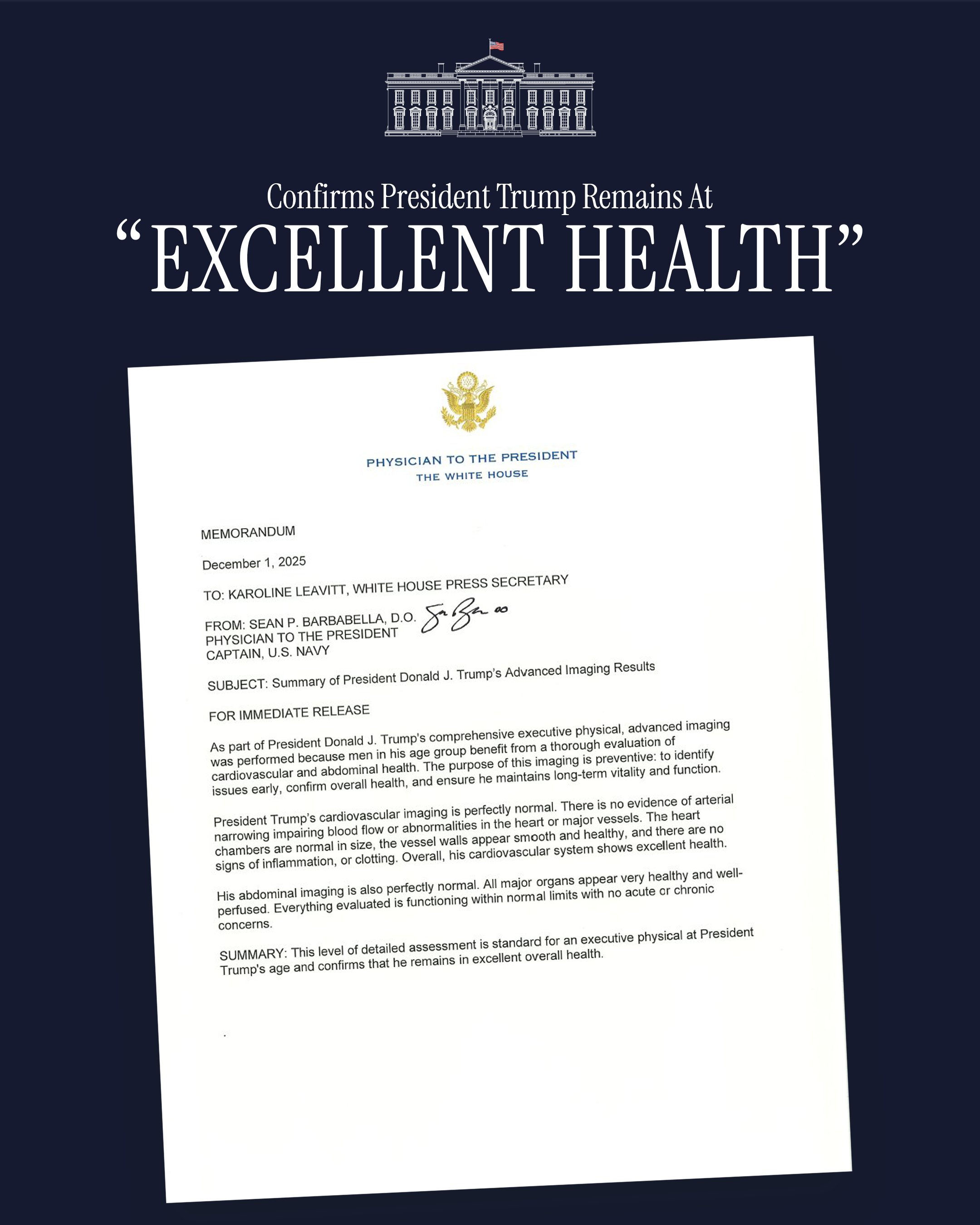 According to a memo issued by White House physician Sean Barbabella, the MRI was part of a broader plan for preventive screening and long-term monitoring, rather than a response to a specific complaint. He emphasised that the test was performed to spot any potential problems early and to help maintain the president’s long-term wellbeing.