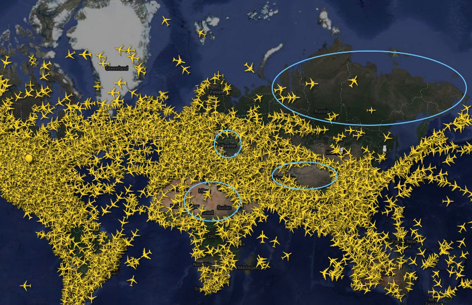 The most visible “hole” in the Flightradar24, a live flight tracker website showed that global air traffic remains almost non-existent over Ukraine.